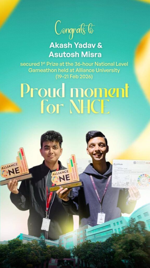 ACHIEVEMENTS National Level Game Development – Runshastra Gameathon 2026 We are pleased to share that Akash Yadav (1NH24EE009) and Ashuthosh Mishra participated in the National Level Game Development event. It was a 36-hour Gameathon hosted by Alliance University from 19th to 21st February 2026. We are delighted to announce that they secured the First Prize […]