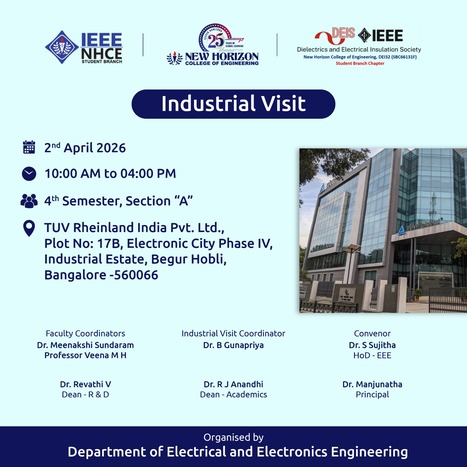 CO-CURRICULAR ACTIVITIES Industrial Visit (4th Semester Section A) – TUV Rheinland India Pvt. Ltd The Department of Electrical and Electronics Engineering (EEE), in collaboration with the IEEE NHCE Student Branch and the IEEE DEIS Student Branch Chapter, organised an industrial visit for 4th Semester EEE students of Section A on 2nd April 2026. The visit […]