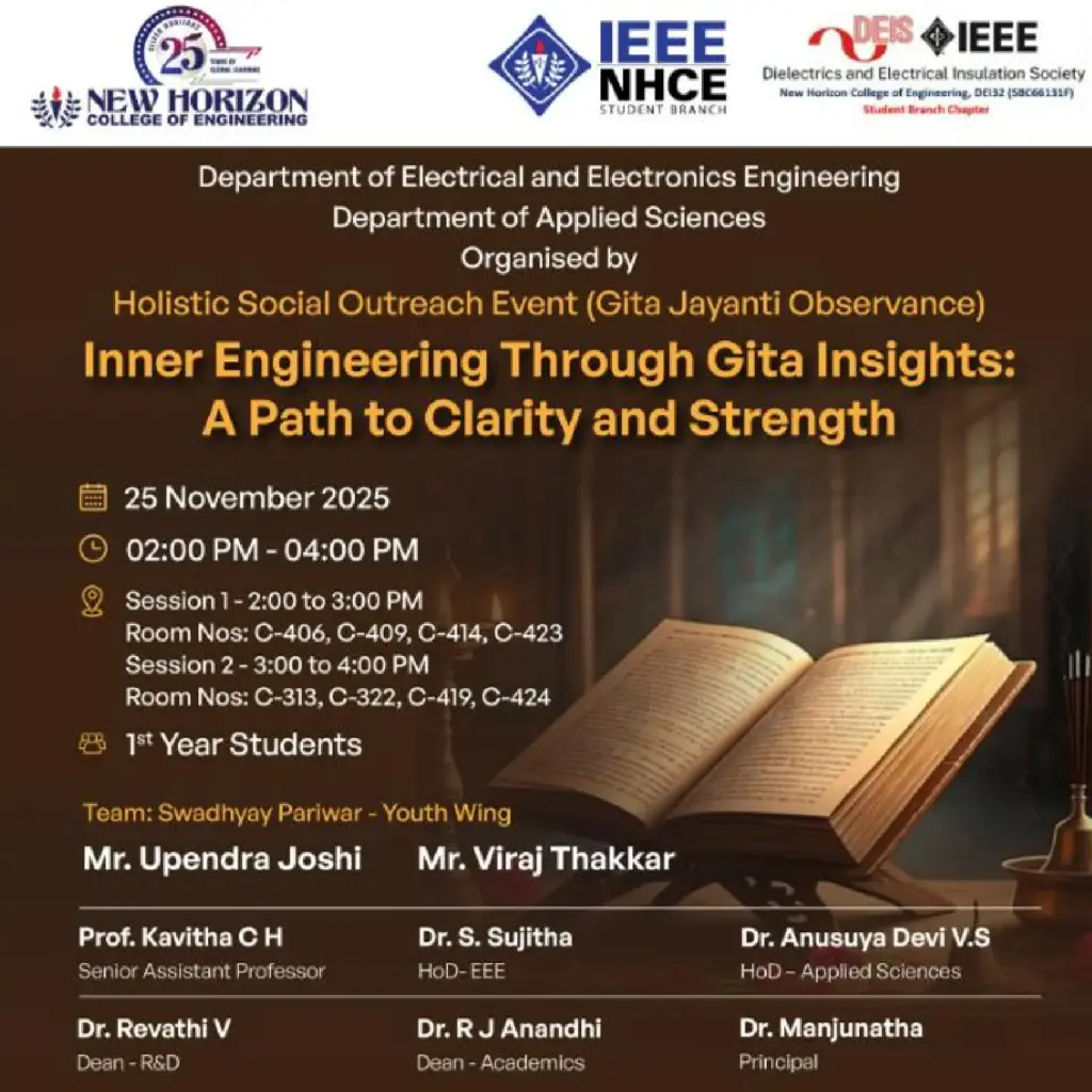EXTENSION PROGRAM Gita Jayanti Observance: Inner Engineering Through Gita Insights – A Path to Clarity and Strength As part of the Gita Jayanti Observance, a Holistic Social Outreach Event titled “Inner Engineering Through Gita Insights: A Path to Clarity and Strength” was held on 25th November 2025 at New Horizon College of Engineering. The program, […]