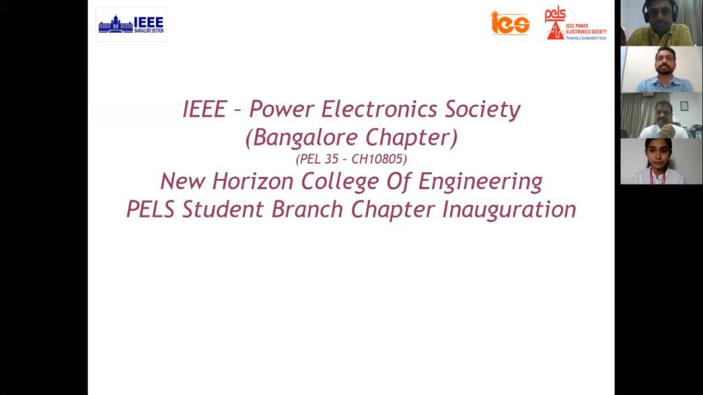 SEMINARS & WORKSHOPS “Power Electronics Converters for Smart Microgrid” Date:31.05.2021 To 31.05.2021Time: 18.00 To 19:30 The Department of Electrical and Electronics Engineering, New Horizon College of Engineering, Bengaluru organised the Webinar on “Power Electronics Converters for Smart Microgrid” on 31st May 2021, Monday from 06.00 PM to 07.30 PM in association with IEEE PELS Student […]