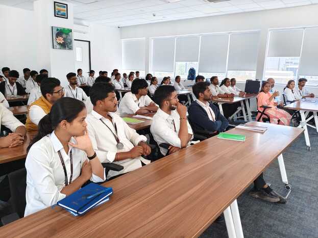 Students were introduced to Rakon’s global presence and its expertise in high-precision frequency control solutions. Engineers provided an overview of the manufacturing processes involved in the production of crystal oscillators, quartz crystals, and timing modules. The team guided students through the crystal fabrication unit, where they observed quartz processing techniques used to achieve accurate frequency generation.